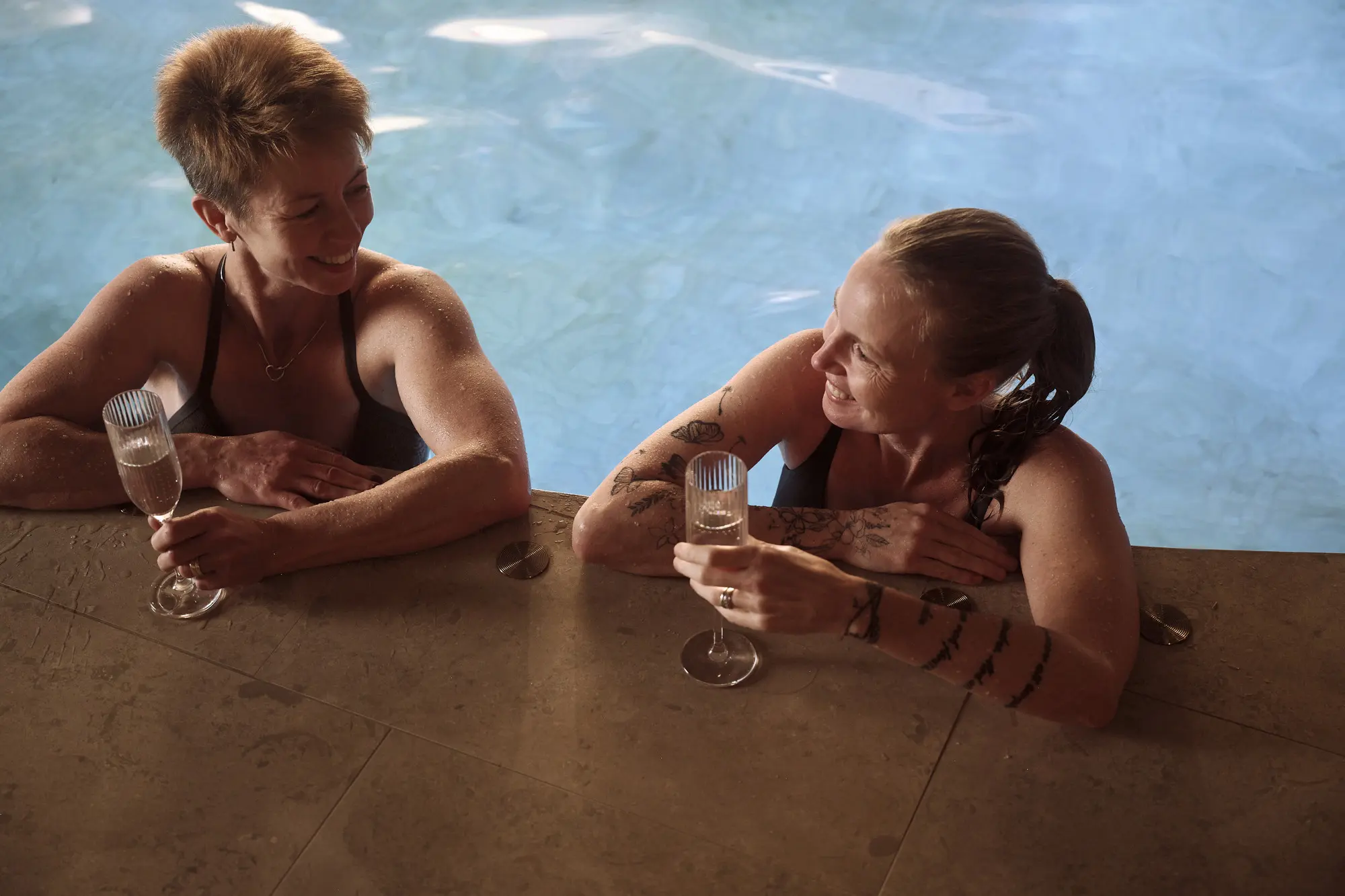 After dinner, the spa opens exclusively for evening guests between 8:00 and 11:00 PM. Relax in our saunas and pools, refresh yourself with the cold-water bucket or foot bath, and unwind in the lounge by the open fire or at the bar. A spa ritual with products from C/O Gerd is included to elevate your experience.